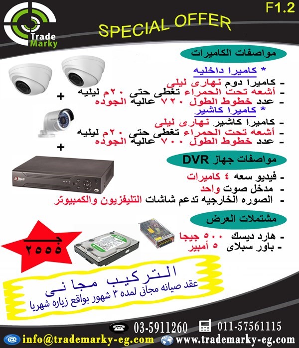 تقدم لك شركة تريد مارك لكاميرات المراقبة واجهزة بصمة حضور وانصراف افضل العروض علي كاميرات المراقبة ولفترة محدودة