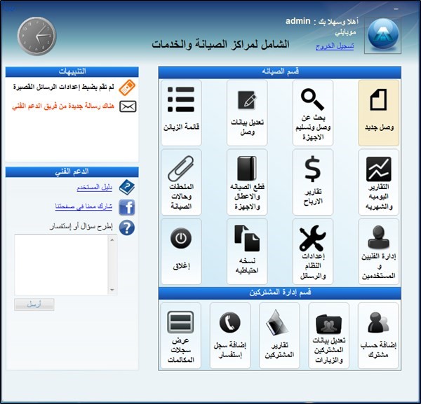 تحتاج لمتابعة عمل الفنيين ومشاهدة تقارير بعدد الأجهزة المستلمة والمصلحة والتي تم تسليمها للزبائن وعرض تقارير الأرباح ؟