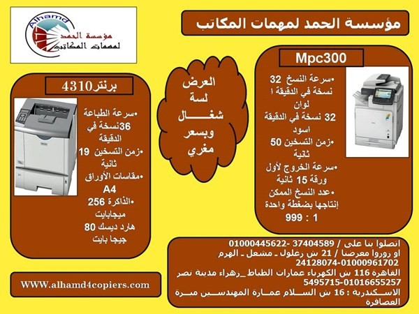 اشتري الة تصوير الوان موديل c300 وكمان برنتر اسود موديل 4310