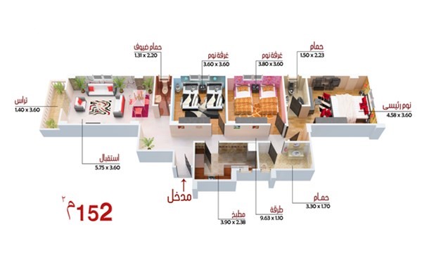 شقة للبيع 152م واجهة بحري بموقع ممتاز بالتجمع الخامس