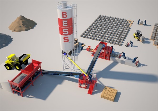 الطاقة الانتاجية في 8 ساعات : 4000 بلوك / 300 م2 انترلوك / 1000 بلدورة
