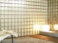 ويرص طوب البناء الزجاجي بعضه فوق بعض مثل الطوب وذلك لعمل جدران توفر الخصوصية ،