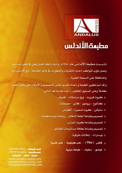 | مطبعة الاندلس . | الاسم |