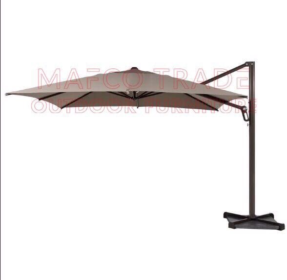 شمسية ايكيا مستطيلة مقاس 3.30متر فى 2.40 متر عمود جنب بالميكانزم تميل 90 درجة بتلف 360درجة حسب اتجاه الشمس فرامل على العمود سهلة الفتح والغلق على قاعدة رخام يسهل تحريكها فى اى مكان القماش ووتر بروف متوفرة اللون البيج واتربروف متوفر مجموعة مختلفة من الشمسيات المستوردة بالوان ومقاسات مختلفة عمود جنب وعمود وسط led